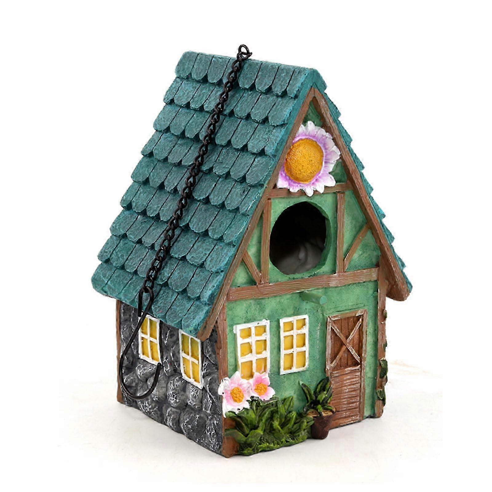 Durable outdoor construction Crafted from resinous material to withstand a variety of outdoor conditions. Sturdy iron hanging chains provide secure hanging for longlasting use. Weatherresistant design preserves vibrant colors and structural integrity season after season. Vibrant colorful design Rich colors and lifelike floral details add a playful touch to your outdoor space. Multicolor finish blends seamlessly with garden settings. Makes an eyecatching decorative piece that enhances your backyard or terrace. Birdfriendly design Attracts a variety of birds, including tits, hummingbirds, bluebirds, finches, and more. Provides a safe, cozy nesting spot that encourages birds to visit and stay. For results, pair with bird feeders and baths to create a birdfriendly environment. Gift and use scenarios Garden or balcony focal point: adds beauty while offering nesting opportunities for birds. Part of a birdfriendly setup: combine with feeders and baths to attract a diverse avifauna. Gift option: suitable for birthdays, holidays, or housewarmings for nature lovers and bird enthusiasts. Key attributes Material: resinous body with iron hanging chains Function: decorative birdhouse that provides nesting space and attracts wild birds Compatibility: pairs with typical garden settings and birding accessories Performance: weatherresistant, colorpreserving design built for outdoor use Note: Due to the light and screen setting difference, the item's color may be slightly different from the pictures. Please allow slight dimension difference due to different manual measurement.
