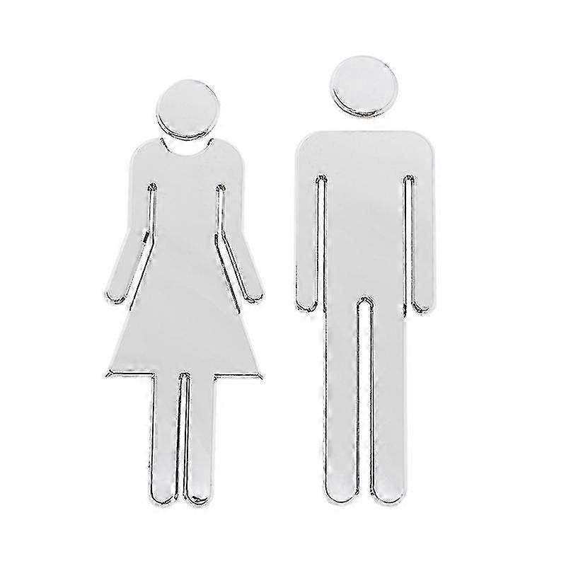 1 pair 12cm self-adhesive 3d mirror public toilet restroom sign men women shape wall art stickers for bar school (silver) 25-26s