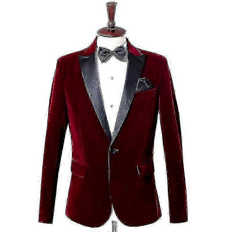 Men's Velvet Blazer Slim Fit Solid Tuxedo Jacket Business Casual Blazer 25-26s