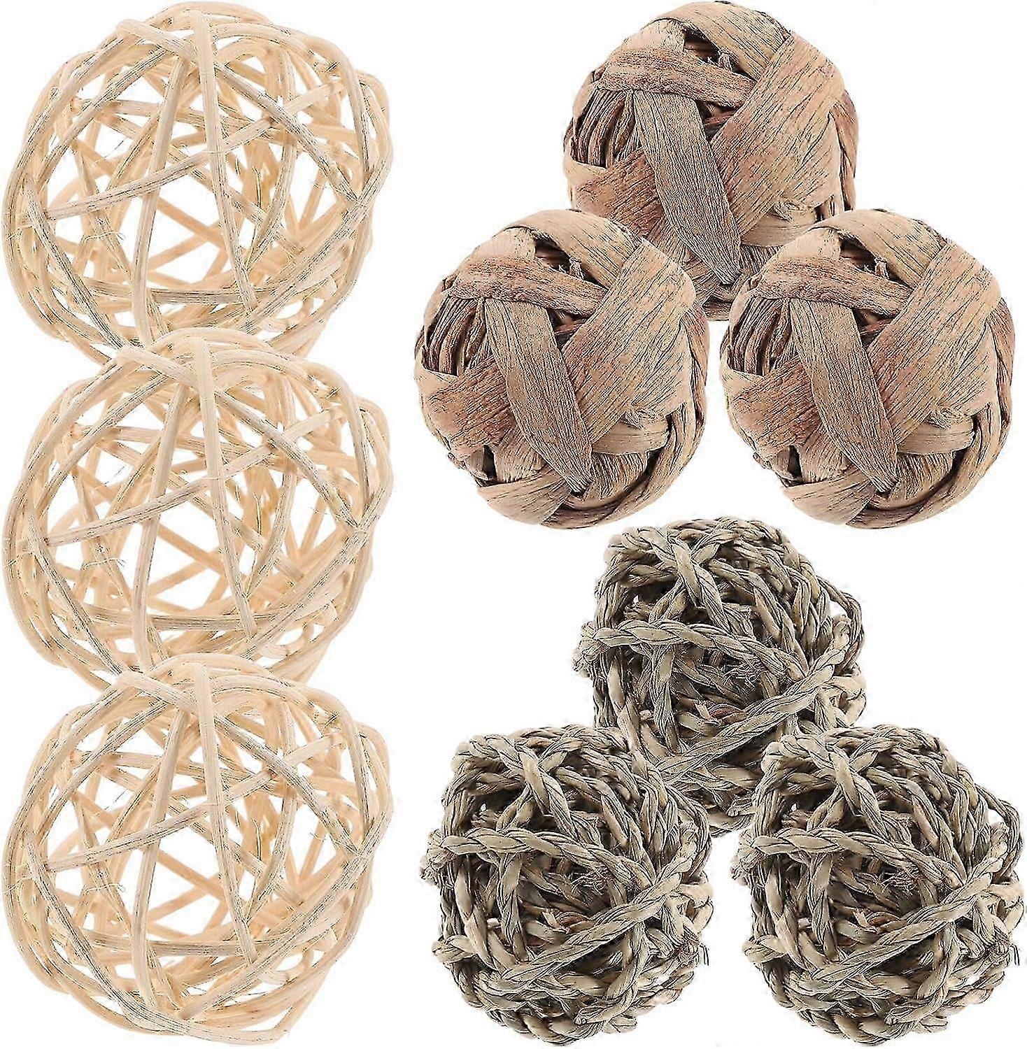 9pcs Rabbit Chew Toys Small Animal Chew Ball Toy Rolling Activity Play Balls Bunny Treat Ball Grass Ball Pet Cage Accessories for Rabbits Gu