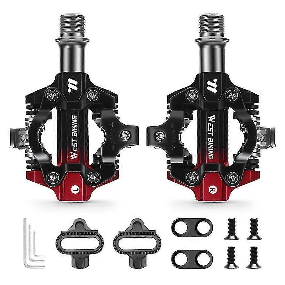 WEST BIKING YP0802148 1 Pair MTB Self Locking Pedals Aluminum Alloy Moutain Bike Pedals Compatible with SPD Red / Black