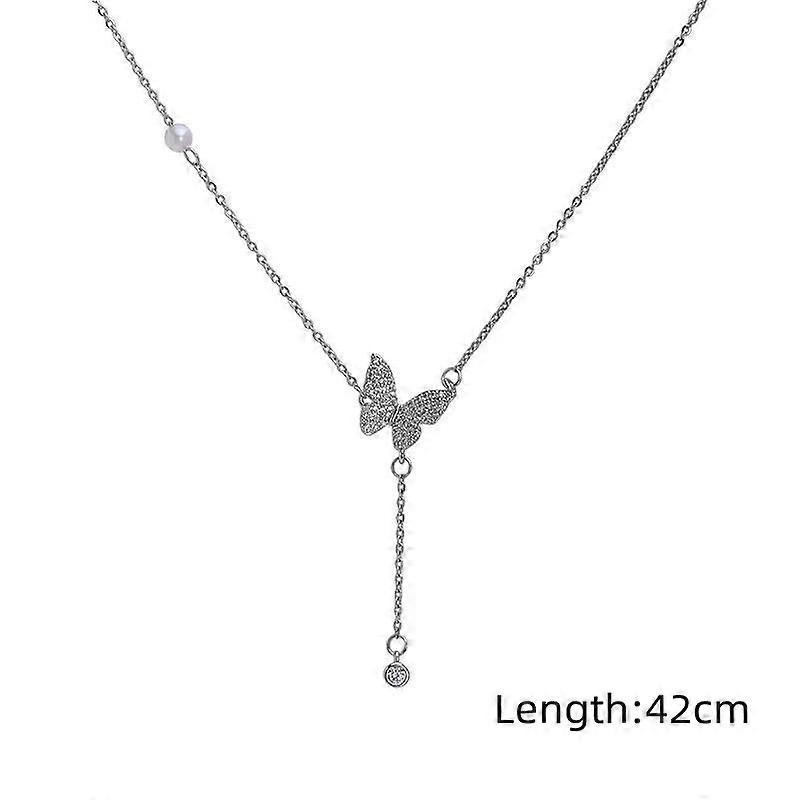 Shiny Crystal Butterfly Pendant Necklace Zircon Exquisite Pearl Clavicle Chain Necklace For Women Wedding Party Jewelry Gifts