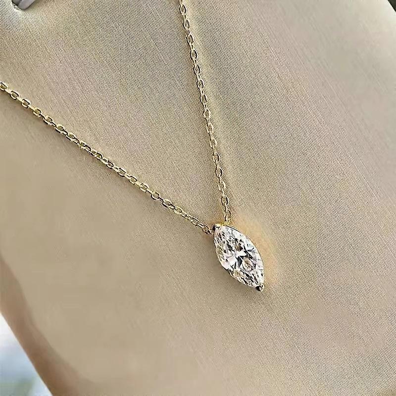 Huitan Shiny Marquise CZ Pendant Necklace with Gold Color Chain Simple Stylish Jewelry for Wedding Women Exquisite Accessories