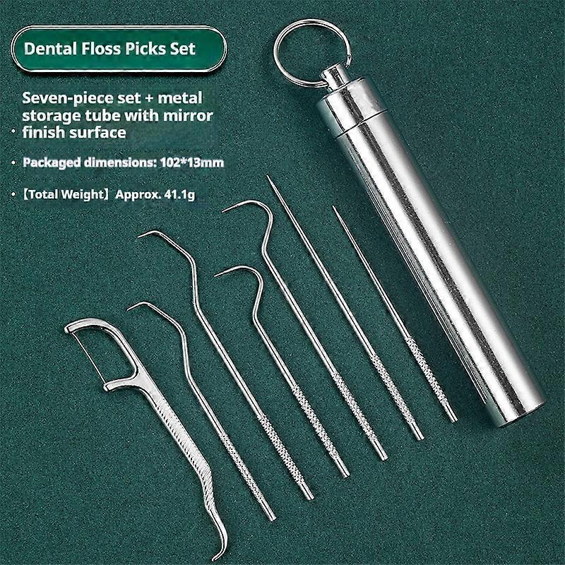 Stainless Steel Toothpick Set Portable Storage Tube Care Metal Tooth Pick Oral Dental Cleaning Tool