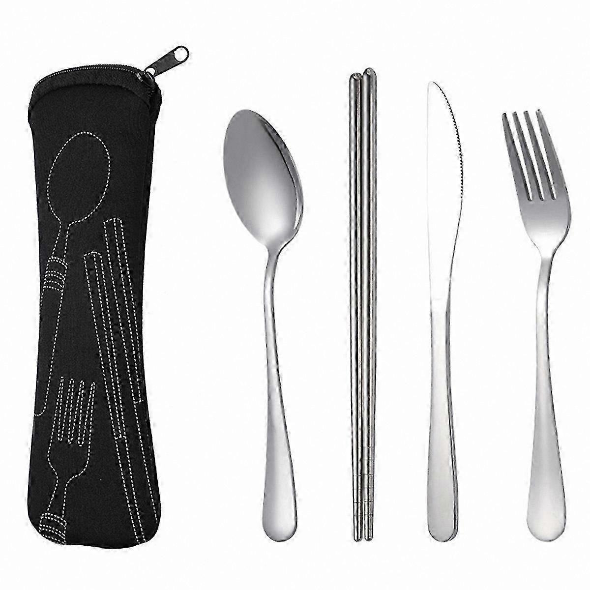 4-Piece Stainless Steel Travel Cutlery Set - Portable Spoon, Fork, Knife, and Steak Knife for Dining on the Go