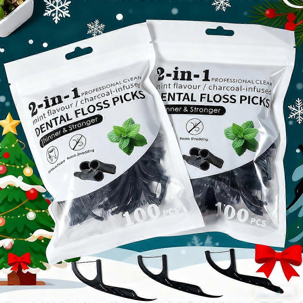 Bamboo Charcoal Mint Dental Floss Picks Disposable 200 Counts Deep Clean Teeth Fresh Breath Home Travel Friendly
