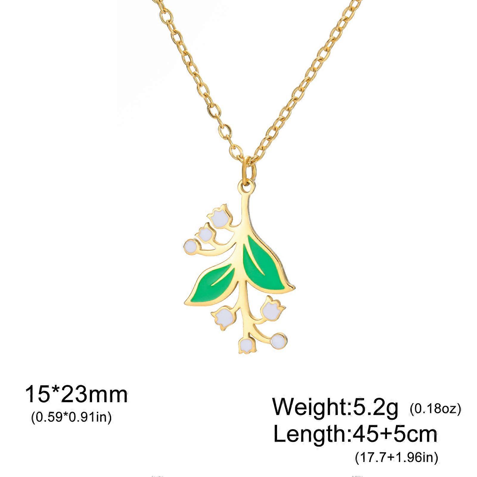 Green and White Enamel Lily Of The Valley Pendant Necklaces for Women Girls Stainless Steel Gold Color Jewelry Birthday Gift