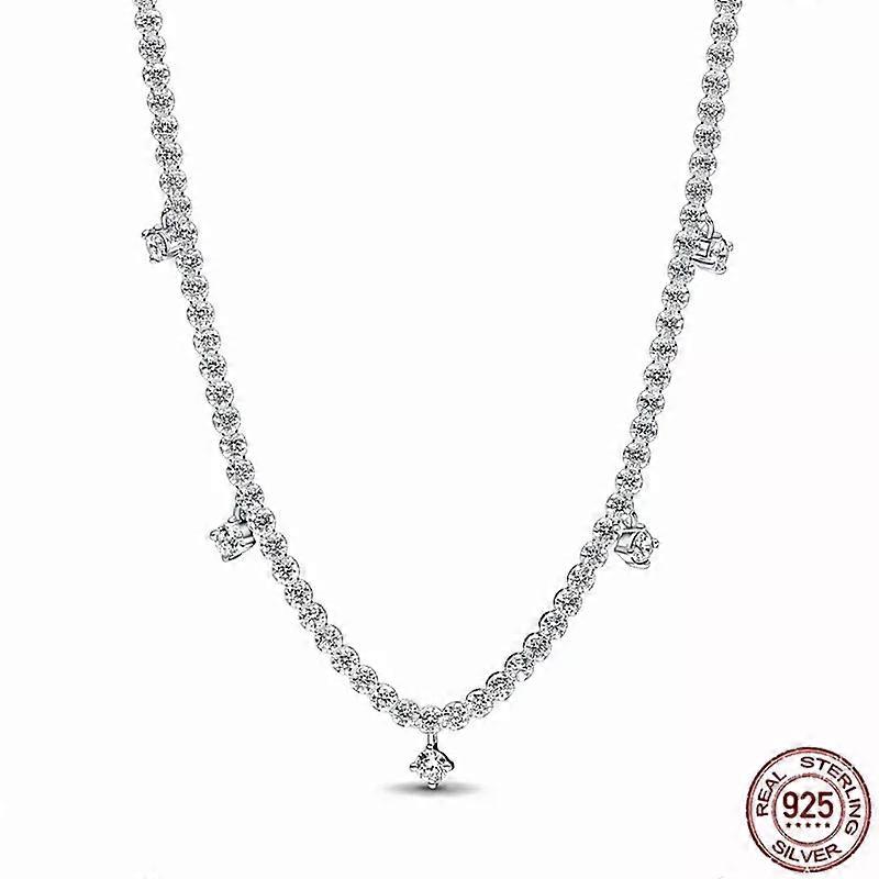 Exquisite Zircon Heart Bowknot Necklace 925 Sterling Silver Simple Classic Women's Jewelry Surprise Deliver Family Friends Gifts