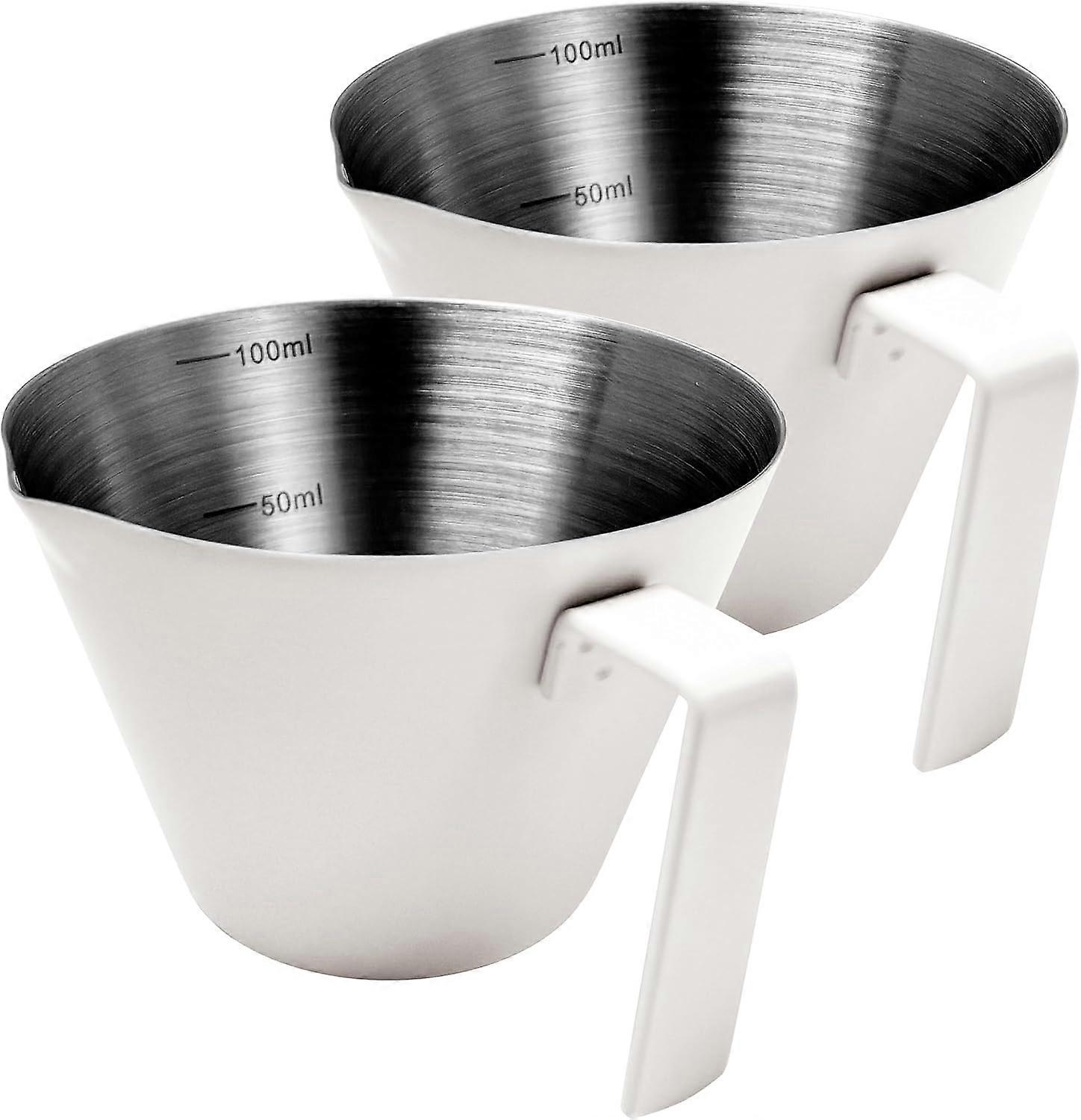 2pcs Espresso Shot Cups 100mL Espresso Measuring Cup Stainless Steel Pouring Cup Scale Kitchen Gadgets (white)