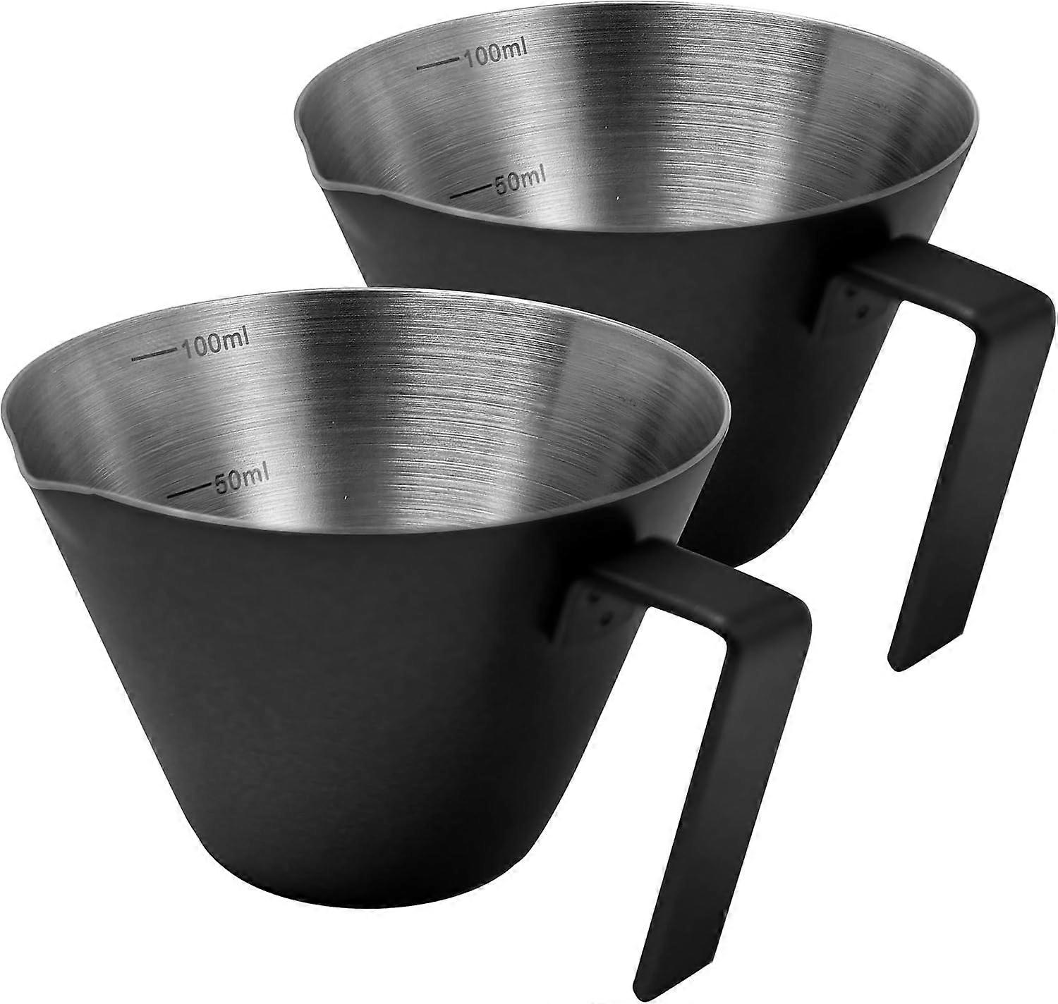 2pcs Espresso Shot Cups 100mL Espresso Measuring Cup Stainless Steel Pouring Cup Scale Kitchen Gadgets (Matte Black)