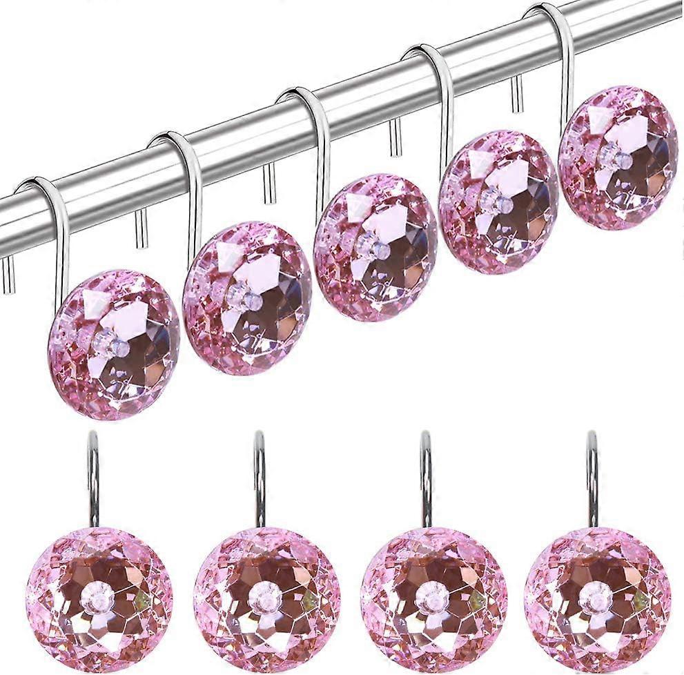 12pcs Shower Curtain Hooks Stainless Steel Shower Hooks Rings for Curtains Decorative Pink Resin Rhinestone Hooks