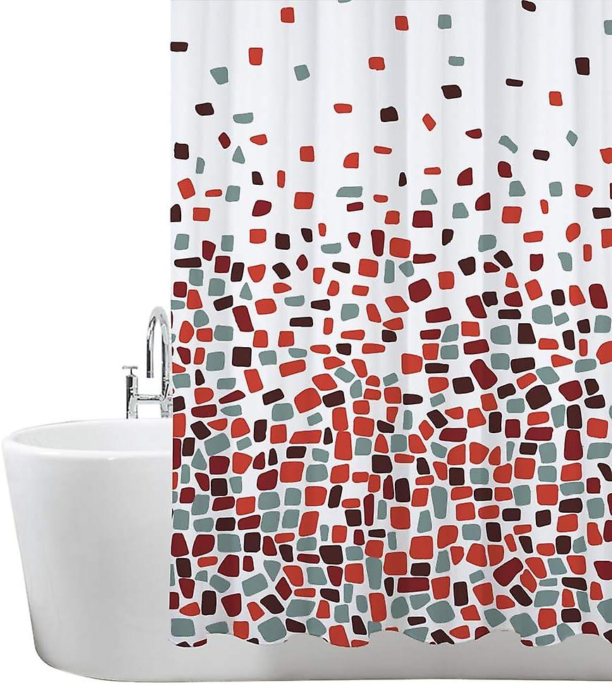 1pc Shower Curtain for Bathroom - Mould and Mildew Resistant - Mosaic red, 180 x 180 cm | Water Repellant Fabric | 100% Polyester