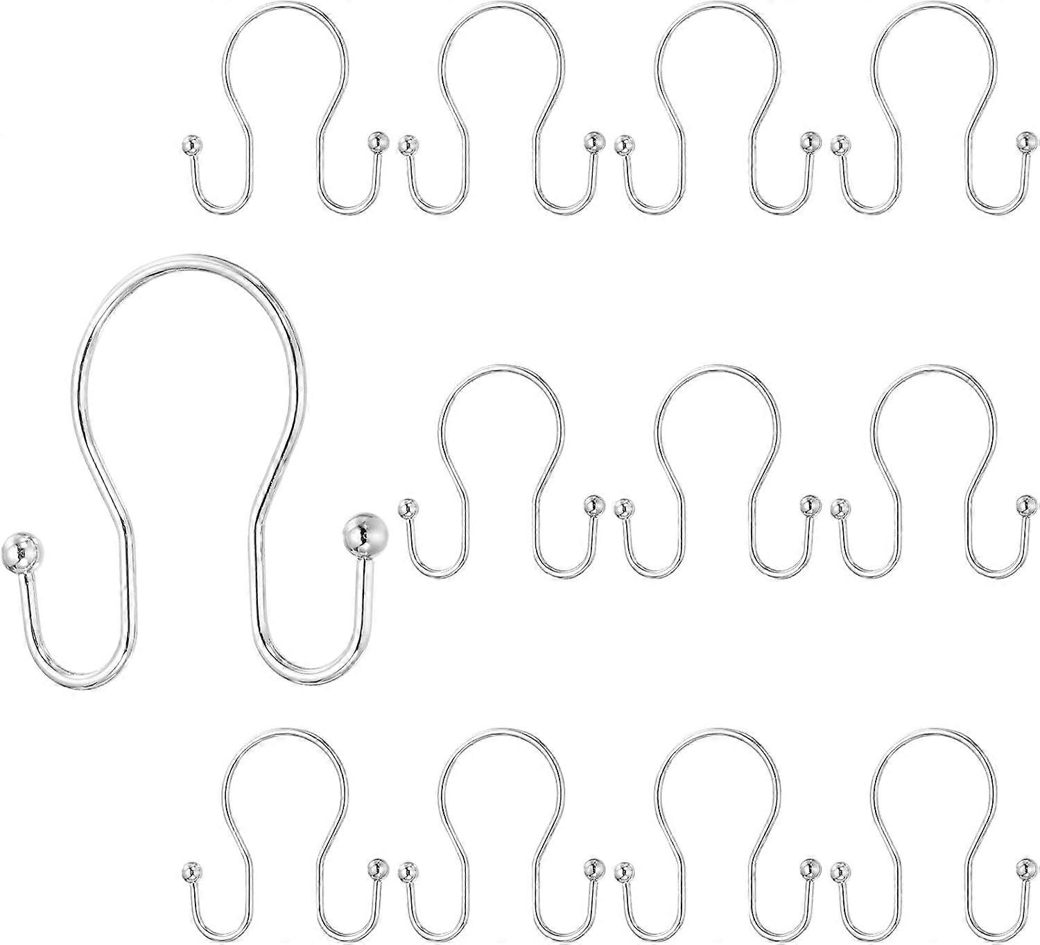 12 Pcs Shower Curtain Hooks Rings Rustproof Metal Double Shower Rod Hooks Fits Standard Shower Rods for Bathroom Shower, Chrome