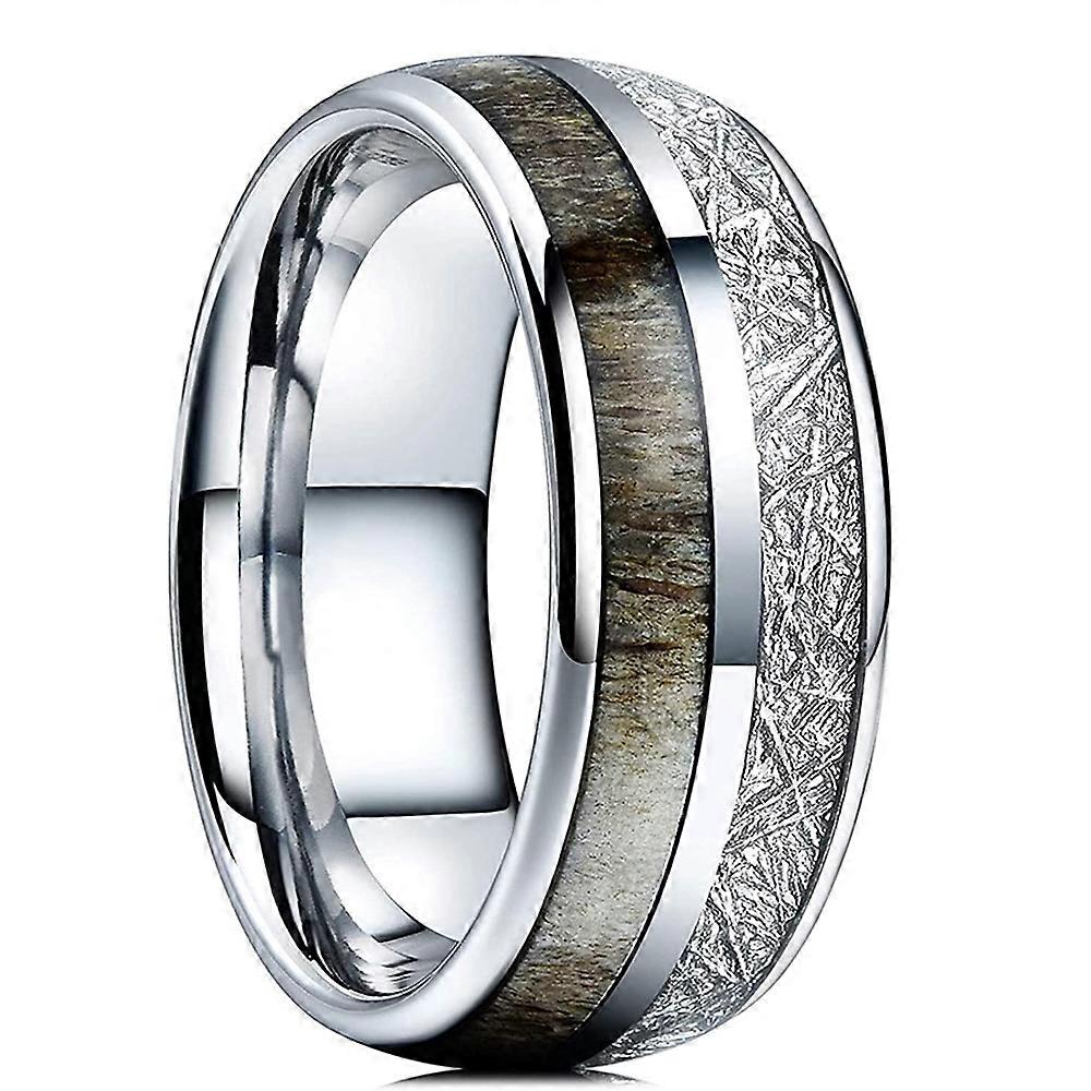 Fashion 8mm Silver Color Stainless Steel Rings for Men Double Groove Meteorite Inlay Dome Men Finger Ring Wedding Band Jewelry