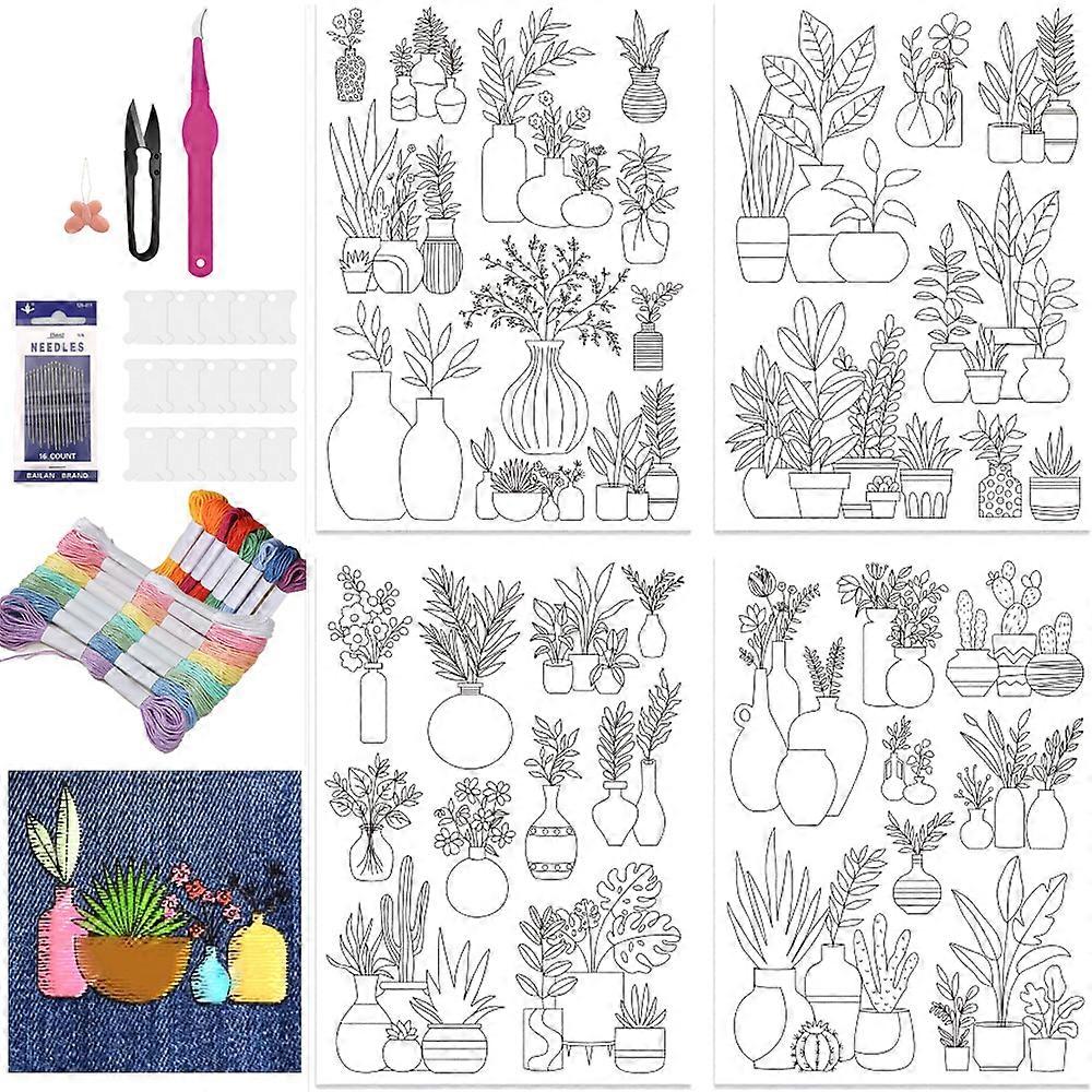 Flower Vase Water Soluble Stabilizer Embroidery Pattern,Self Adhesive Washable Stick and Stitch,Hand Sewing Stabilizers
