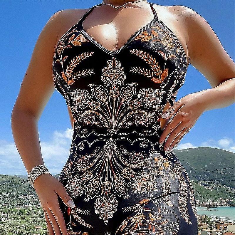 Women's One Piece Swimsuit Tummy Control V Neck Bathing Suits 25-26