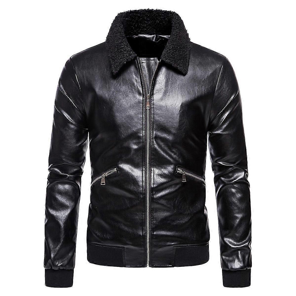 Youthup Mens Zipper Fur Collar Lapel Outwear Coat Leather Jacket 25-26