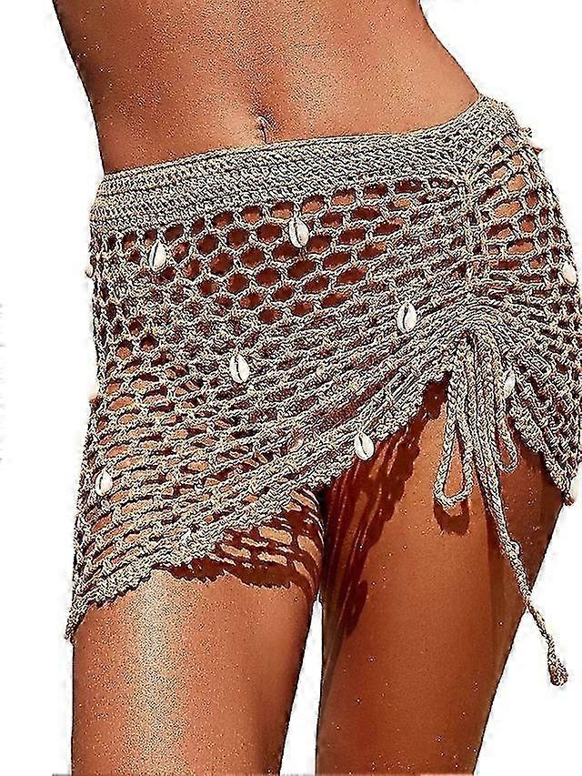 Women's Swimwear Beach Bottom Normal Swimsuit See Through Crochet Solid Color Brown Bathing Suits Sexy Beach Wear 25-26