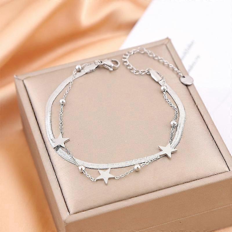 Star Bracelet for Women 18 Gold Plated Dainty Layered Gold Star Bracelets 25-26