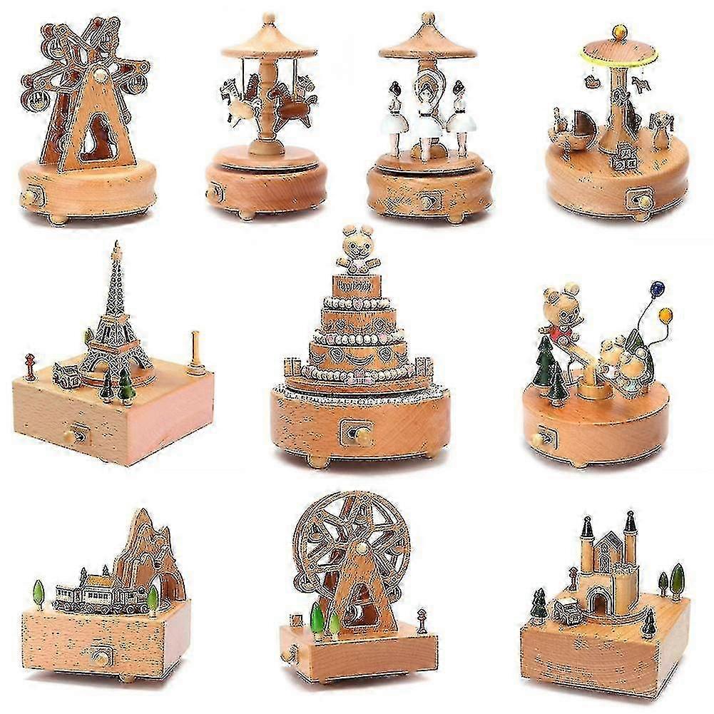 Carousel Musical Box Wooden Music Wood Crafts Retro Birthday Gift Vintage Home Decoration Accessories Christmas Day 25-26