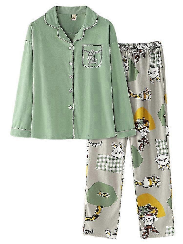 Women's Cartoon Print Pajama Set: Elastic Waist, Pocket Pants 25-26