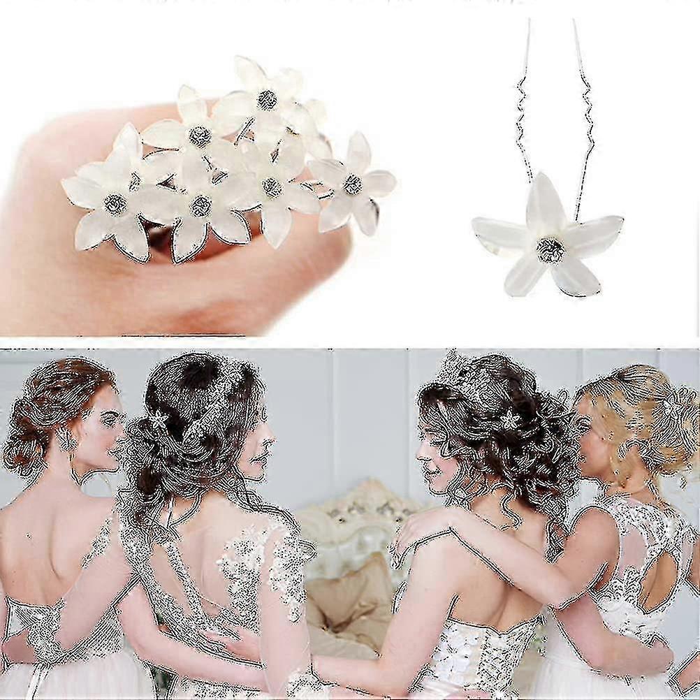 10pcs Wedding Flower Hair Pins, White Flower/pearl Rhinestone Hair Pins U-shaped Hairpins For Bridal Wedding Women Hair 25-26