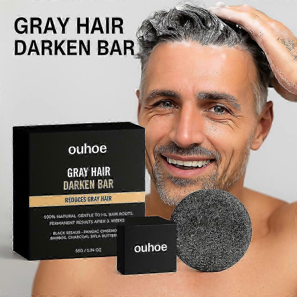 This herbal shampoo bar is specially formulated to support the appearance of darker, more vibrant-looking hair. Made with ginseng, black sesame, and bamboo charcoal, it gently cleanses while helping reduce visible gray strands over time. Infused with ginseng, black sesame, shea butter & charcoal Promotes healthier-looking, fuller hair with continued use Sulfate-free and gentle on scalp and roots Solid 55g bar perfect for travel or daily shower use Natural botanical ingredients no harsh chemicals Best for: Individuals with gray or fading hair looking to restore a naturally deeper tone through daily washing. Note: Due to the light and screen setting difference, the item's color may be slightly different from the pictures. Please allow slight dimension difference due to different manual measurement.