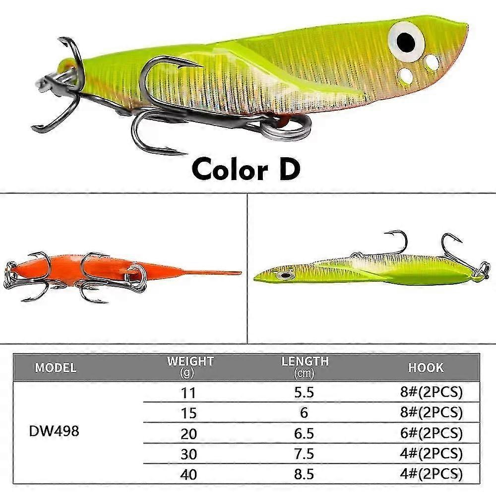 Product Description: and High-StrengthMaterial:Zinc Alloy,MetalColor: 6 colorEyes: 3D FisheyeBait model: VIBBait type: hard baitHook:Sharp Treble hookSpecifications: 11/15/21/30/40g,Packing list: 6pcs Fishing Lures (random color)Note:-The hook is extremely sharp. Please take care for handle it-Keep it out of children's reach-All the pictures are taken in kind.Camera maybe appear off color, please in kind prevail,thanks.-Manual measurement maybe be error. Please in kind prevail, thanks -Colors are arranged randomly,usually we all mix.Feature:-They create lifelike swimming actions in water-3D eyes make it a powerful catching tool-Bright colors to attract big fish-Smooth and rapid diving action-Suitable for freshwater and saltwater-Environment-friendly ABS plastic can be reused and stored for a long time Note: Due to the light and screen setting difference, the item's color may be slightly different from the pictures. Please allow slight dimension difference due to different manual measurement.