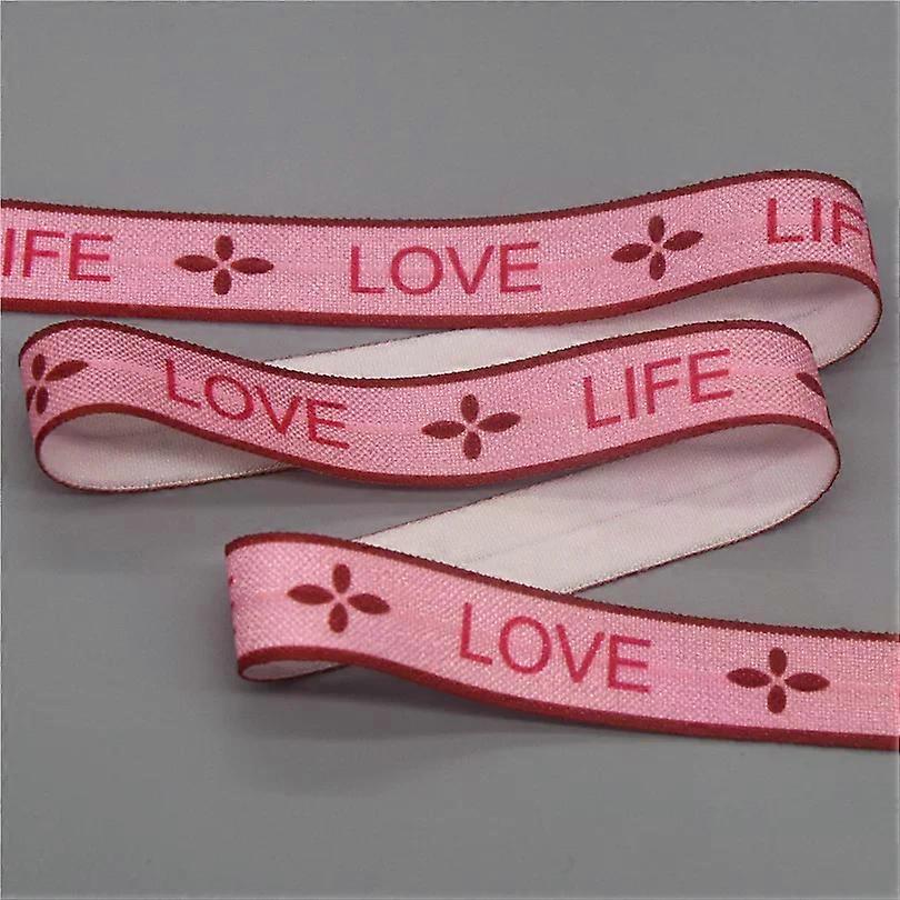 DHK 5/8'' 5yards Love Sister Life Happy Printed Fold Elastic FOE Stretch Ribbon Decorations Craft DIY Sewing C2594