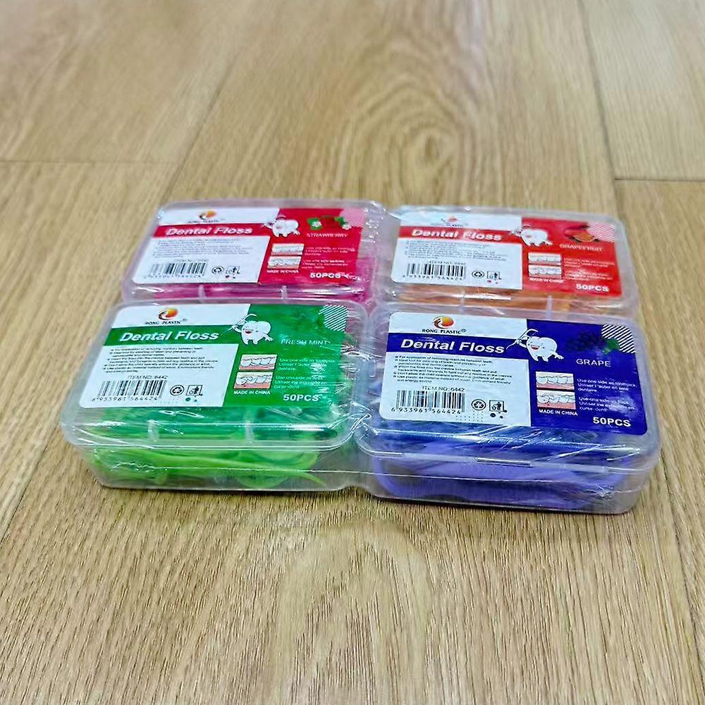 50pcs Fruit Flavored Dental Floss Dispenser Protable Toothpick Dental Floss Stick Thread Holder Picks For Teeth Cleaning Tool