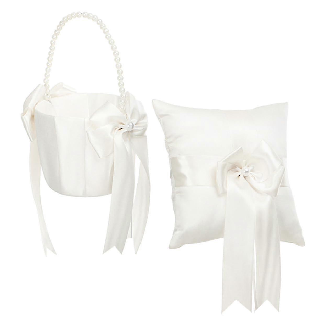 Wedding Ring Pillow Set With Flower Girl Basket Reusable Ring Pillow Decorative Basket 25-26