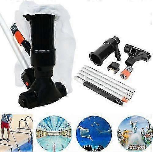 Features:Won't scratch pool liner.Portable: Lightweight, easy to carry and use.Special design allows our skimmer to move effortlessly through water.Durable:The Hot Tub Swimming Pool Vacuum Cleaner is made of premium and plastic material. Fine mesh netting efficiently scoops up even the tiniest bugs and particles.This easy to assemble underwater cleaning tool is simply powered by the water pressure from a garden hose. You can assemble the whole pool jet vacuum cleaner quickly.The water pressure from the hose creates a suction effect, which pulls leaves and debris into the collection bag.The vacuum comes with a large cleaning bag to collect debris, which can be easily emptied. Does not require electricity or power, simply connect to your garden hose, very easy to use Scoops out leaves, bugs & other kinds of debris from your swimming pool, pond, hot tub, fountain or large fish tank.Specifications:1.Material: plastic,metal2.Colour: as shown on3.Garden hose interface size:4.Upside diameter: 3cm/1.18inch5.Bottom diameter: 3.5cm/ 1.38inch Height: 6cm/ 2.36inch6.Pole Adjustable Length: 35 - 120cm / 13.78 - 47in Package Included:1 * suction tip1 * mesh bag1*quick connector1 * buckle5 * pole handle1 * Inlet Note: Due to the light and screen setting difference, the item's color may be slightly different from the pictures. Please allow slight dimension difference due to different manual measurement.