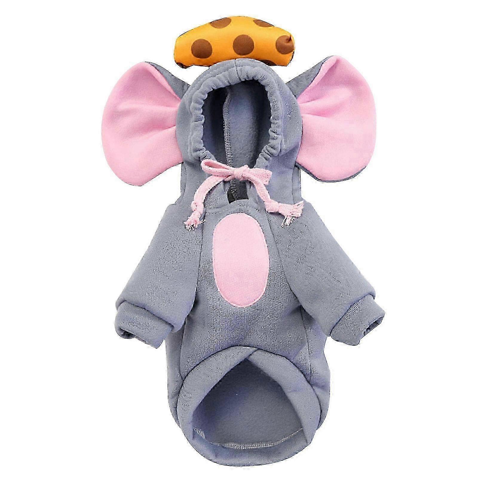 Dogs Cosplay Mouse Jumpsuit with Drawstring Hoodies Set Halloween Dogs Pullover Winter Cosplay Party Small Dogs Pullover 25-26