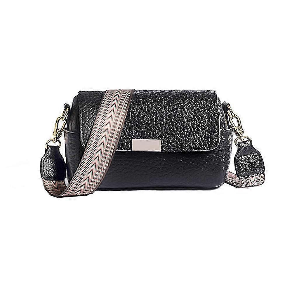 Women's Wide Strap Leather Shoulder Bag Women's Black Modern Bags Stylish Handbag Medium Size 25-26