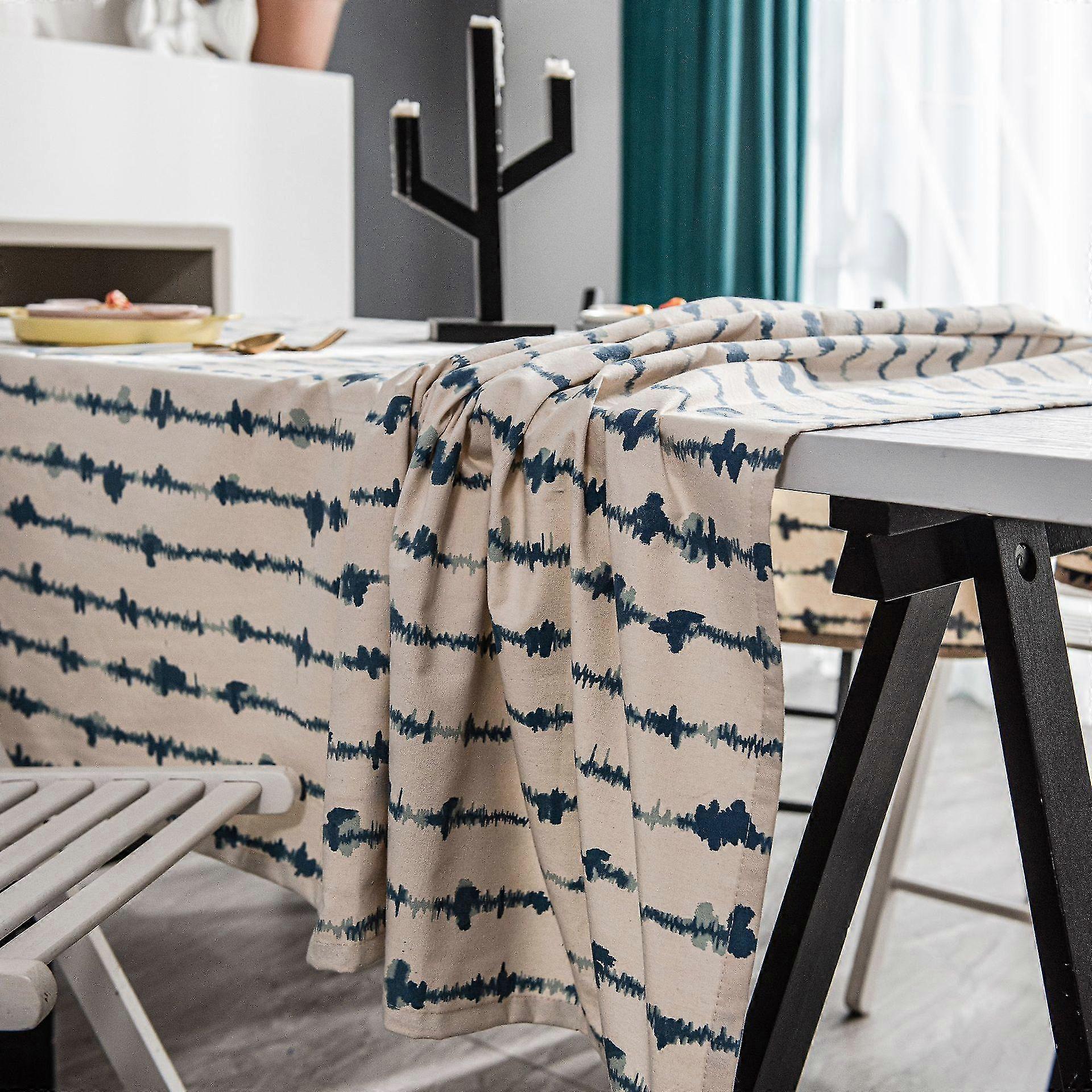 Beige White Blue Corrugated Printed Imitation Cotton Linen Tablecloth 25-26