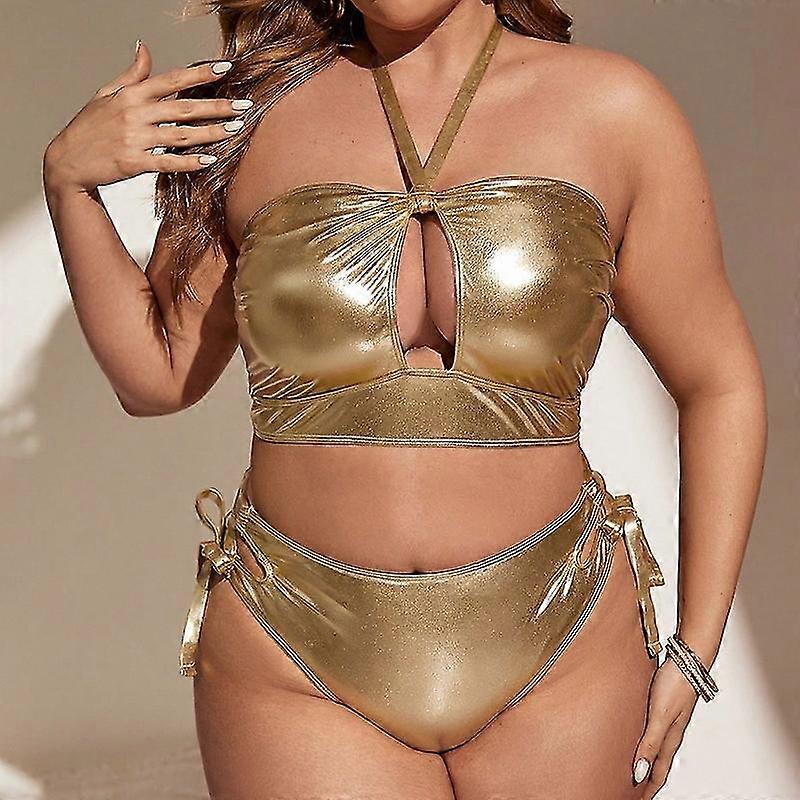 Women's Two Pieces Swimsuit Bathing Suit V Neck Cutout Tummy Control Back Tie Swimwear 25-26