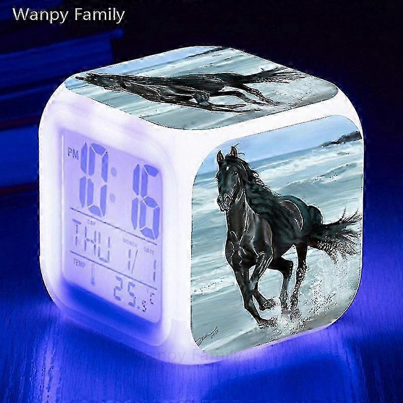 2023new Galloping Horses Alarm Clocks 7 Color Multifunction Luminous Electronic Alarm Clocks For Kids Birthday Gifts 25-26