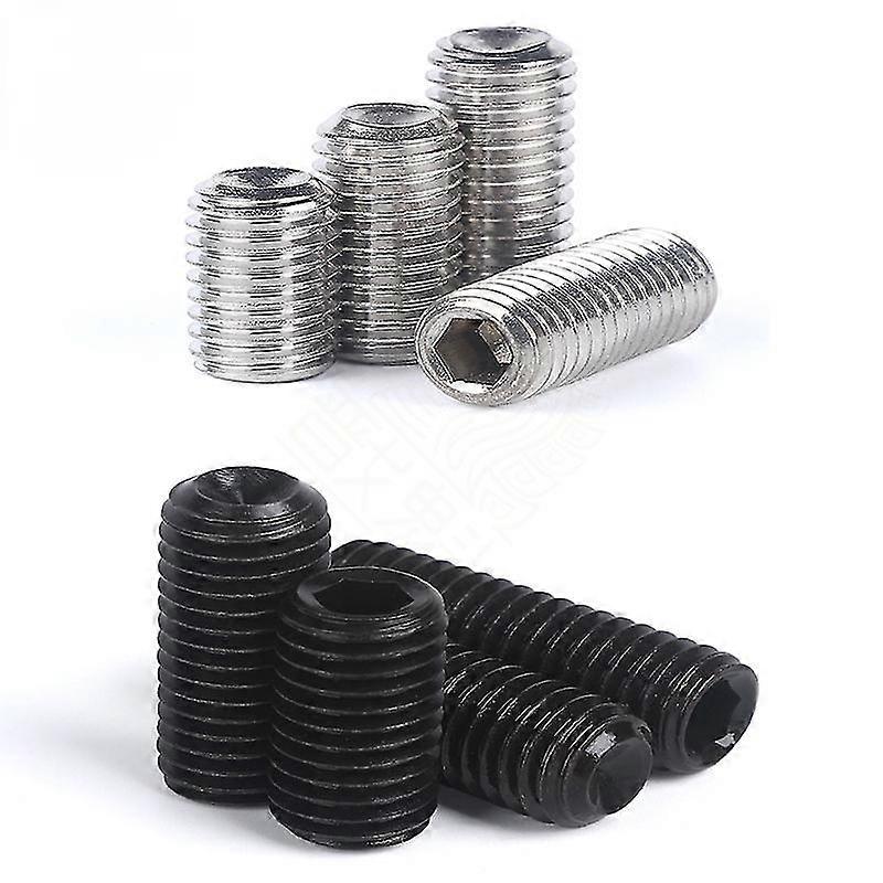 50Pc M2 M2.5 M3 M3.5 M4 M5 M6 Din916 304 Stainless Black Grade 12.9 Steel Hex Hexagon Socket Allen Cup Point Grub Screw Set Bolt 25-26