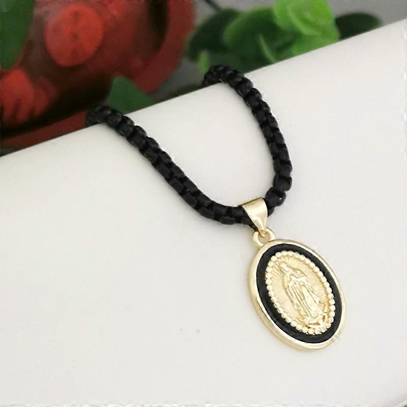 QMHJE Enamel Oval Virgin Maria Pendant Choker Necklace for Women Lady Candy Chain Trendy Jewelry Sweet Gift Hollow Cool Quality