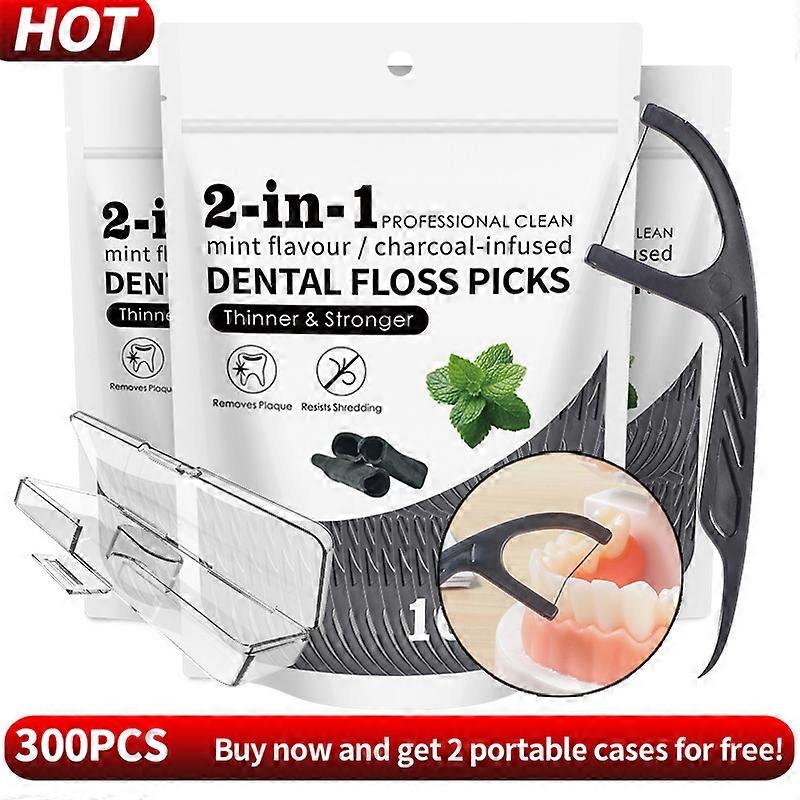 600/300/100/30PCS 2-in-1 bamboo charcoal mint dental floss stick, interdental cleaning tool, free dental floss box, suitable for