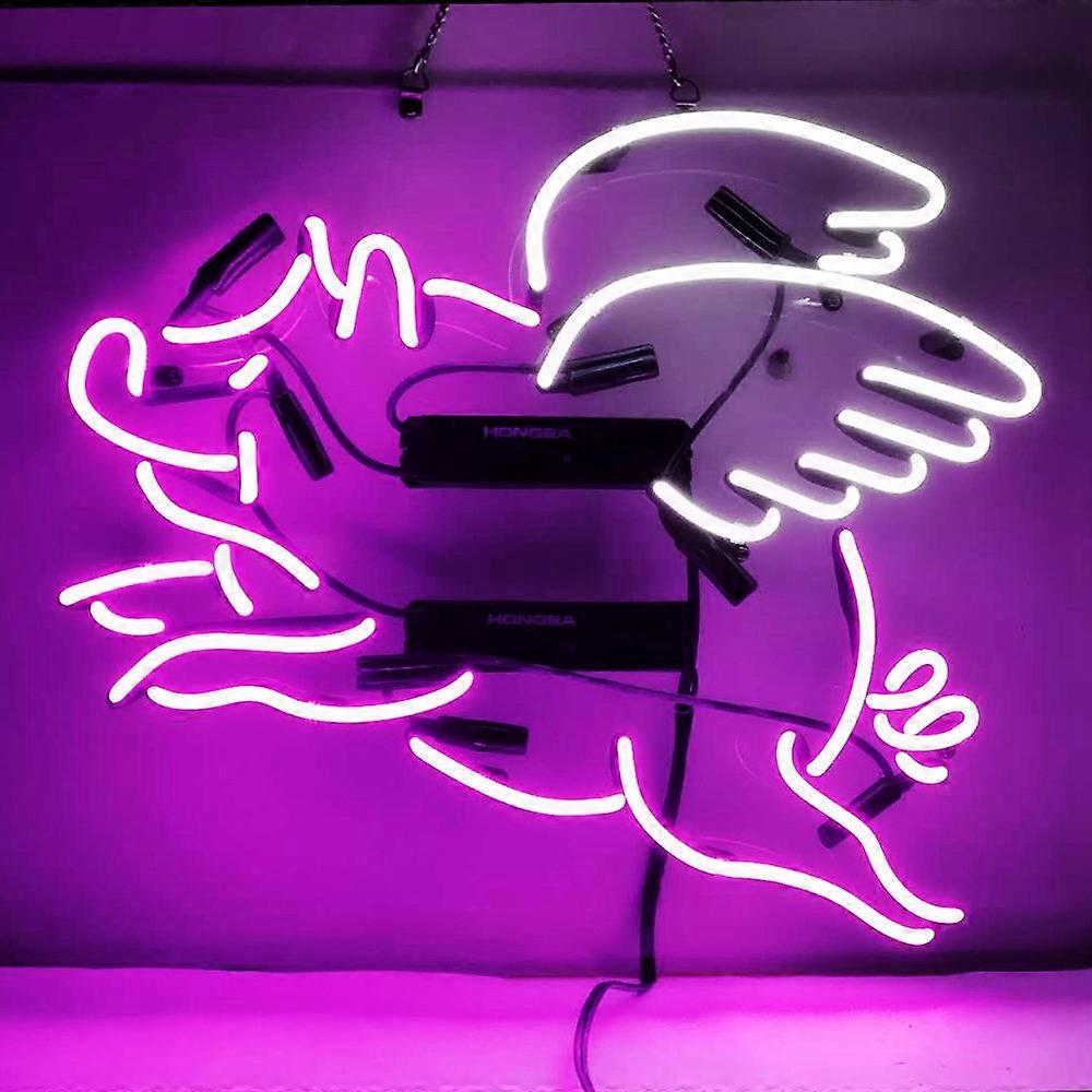 Flying Pig with Angel Wings Handmade Real Glass Neon Sign - 19"x15" Whimsical Motivational Wall Art Decor & Nightlight