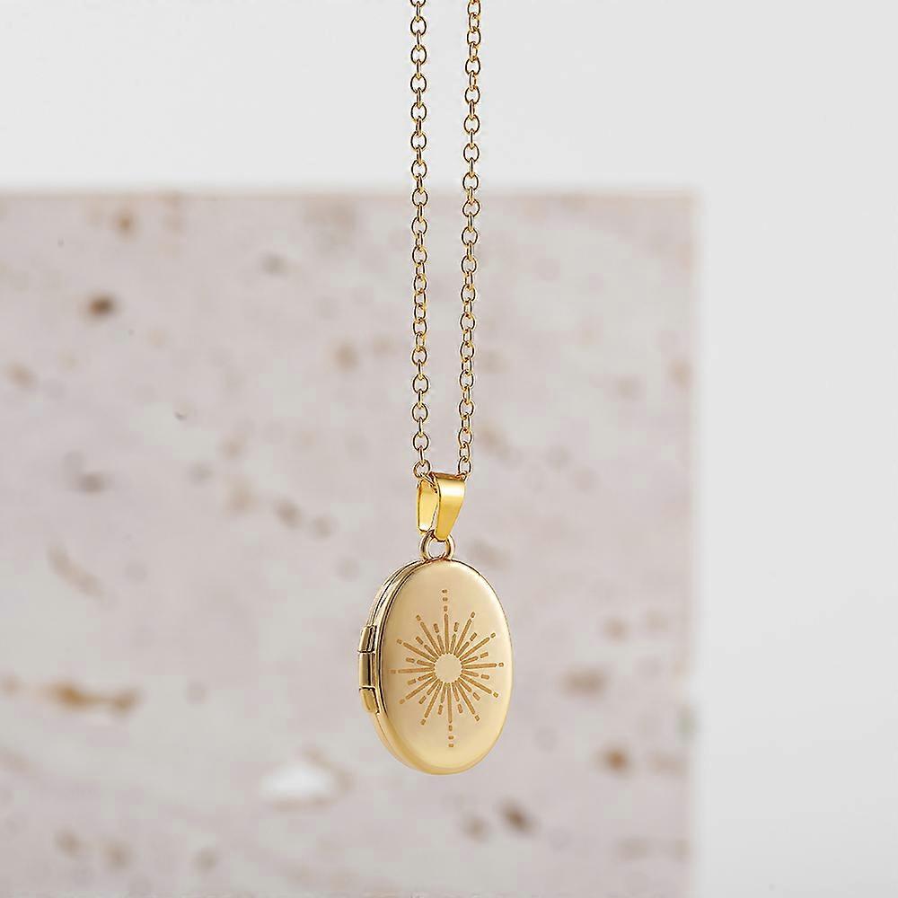 Vintage Moon Sun Evil Eyes Oval Photo Frame Locket Necklace for Women Stainless Steel Choker Necklaces Collar Jewelry Mom Gift