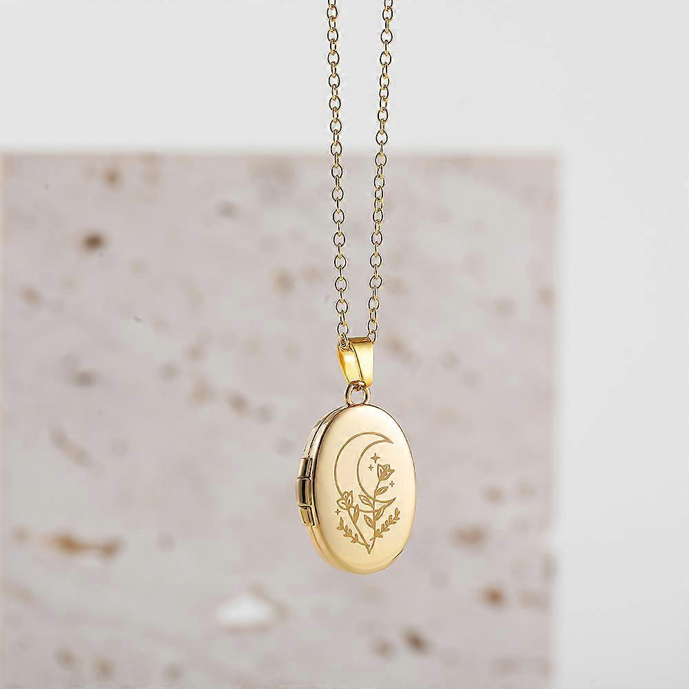 Vintage Moon Sun Evil Eyes Oval Photo Frame Locket Necklace for Women Stainless Steel Choker Necklaces Collar Jewelry Mom Gift