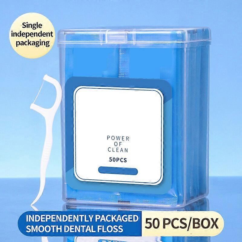 50pcs Mint Flavored Dental Floss Plastic Toothpicks-Single Independent Packaging-Disposable Dental Cleaning Tools-Oral Car