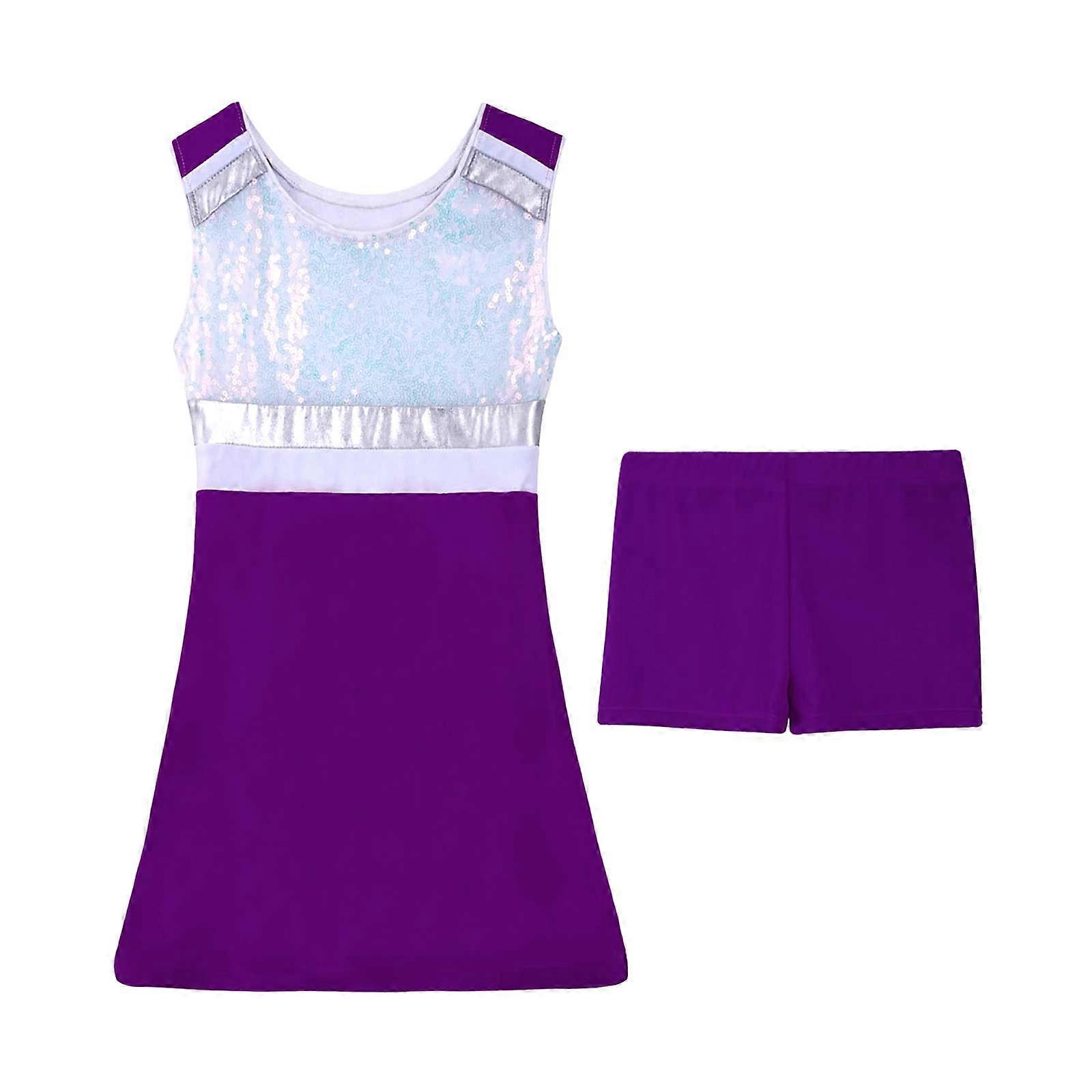 2Pcs Kids Girls Cheerleading Uniform Cheerleader Costume Dance Outfit Shiny Sequins Adorned Bodice Sport Dress with Shorts Set
