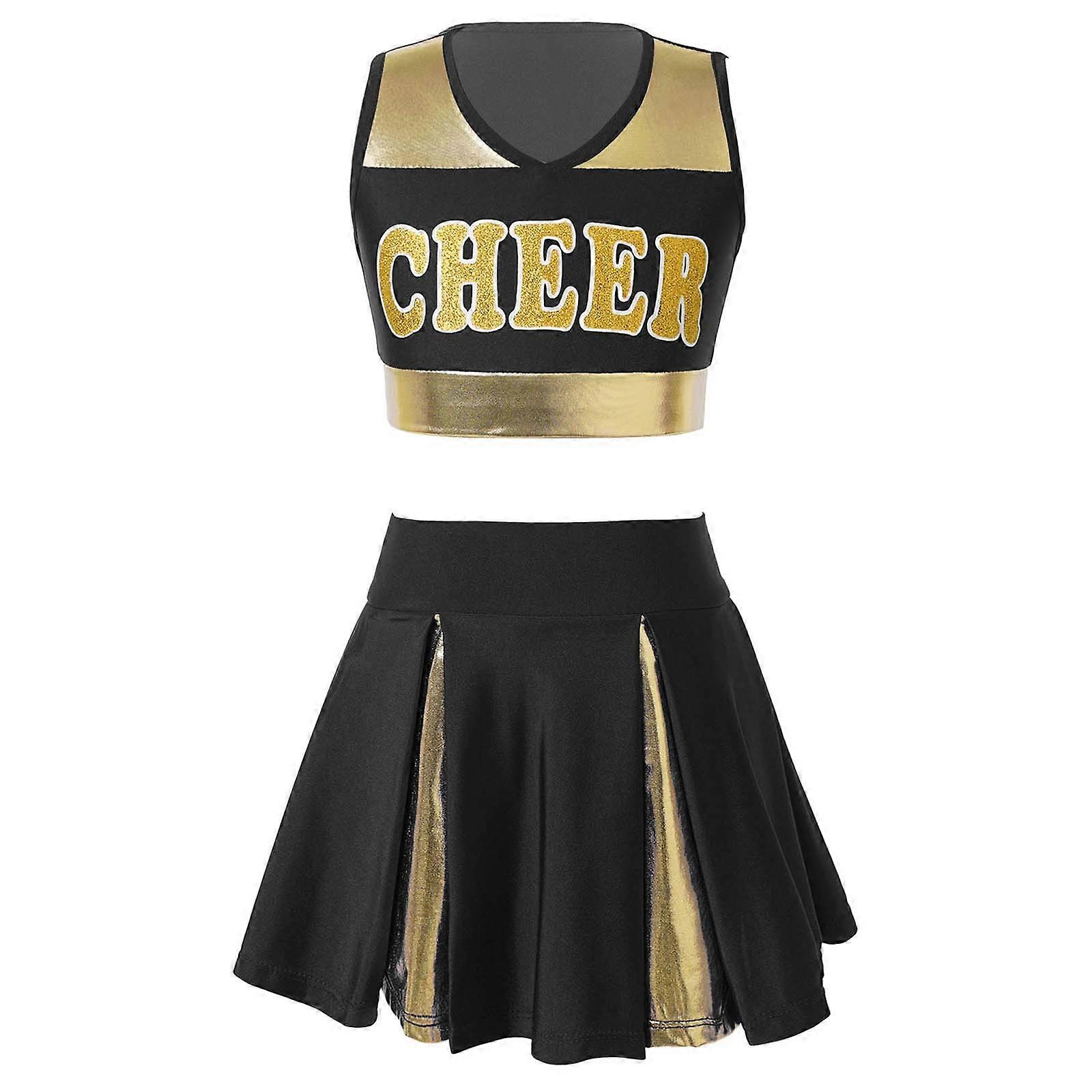 Kids Girls Cheerleading Uniform Cheerleader Costume Cheer Modern Dance Outfits Clothes Set Crop Top with Elastic Waistband Skirt