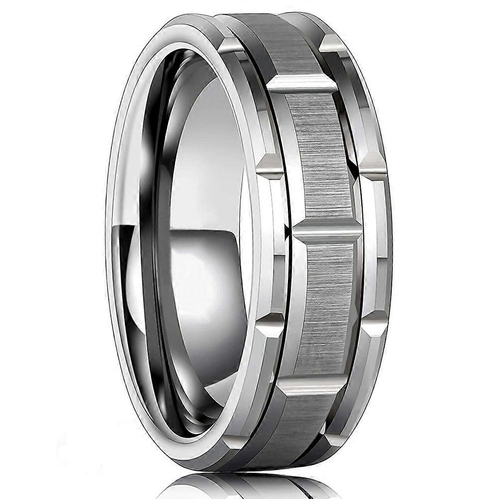 Fashion Men's 8mm Gold Color Groove Beveled Edge Tungsten Wedding Carbon Fiber Ring Punk Gear Wheel Stainless Steel Ring For Men