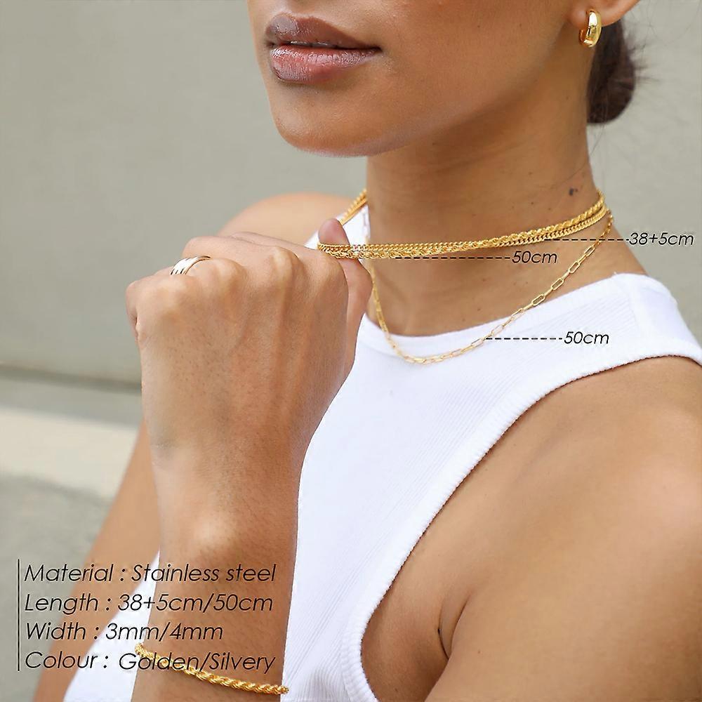 eManco Classic Women's Necklace Multi Stacked Fine Chain Stainless Steel Gold Plated Necklaces Fashion Jewelry Gifts