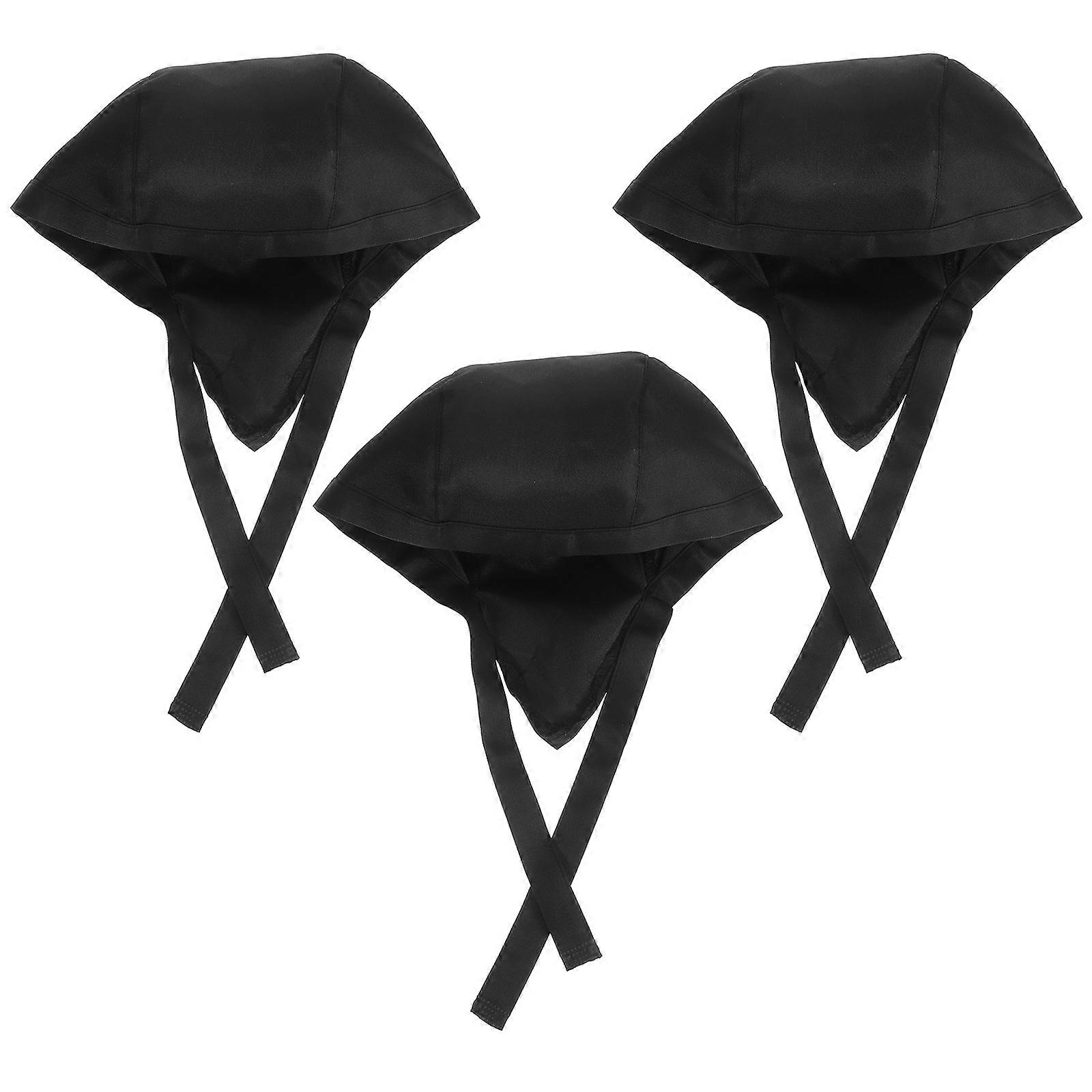 Black Chef Turban for Wearing Use 24Pcs Adjustable Cloth Kitchen Hats