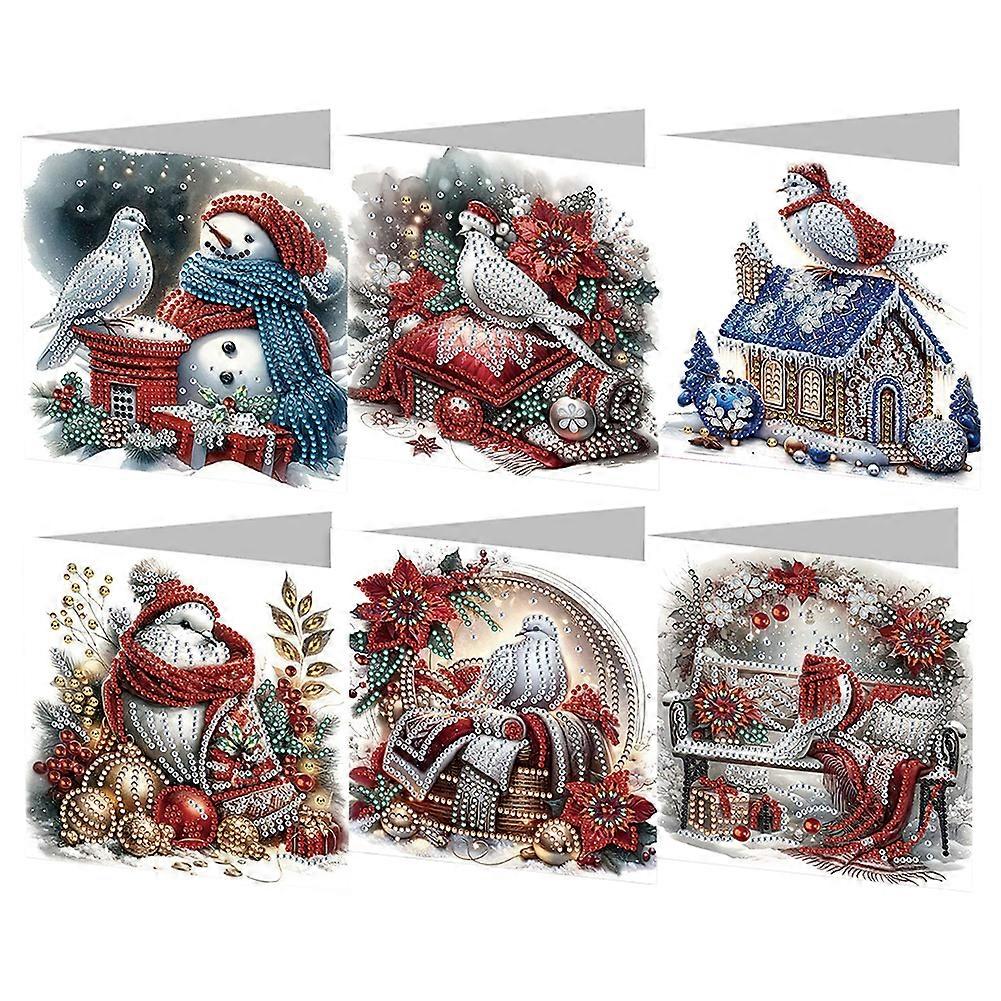 6/12PCS New Christmas Cards Snowman DIY Diamond Painting Card 5D Diamond Embroidery Diamond Mosaic Set Greeting Thank You Card